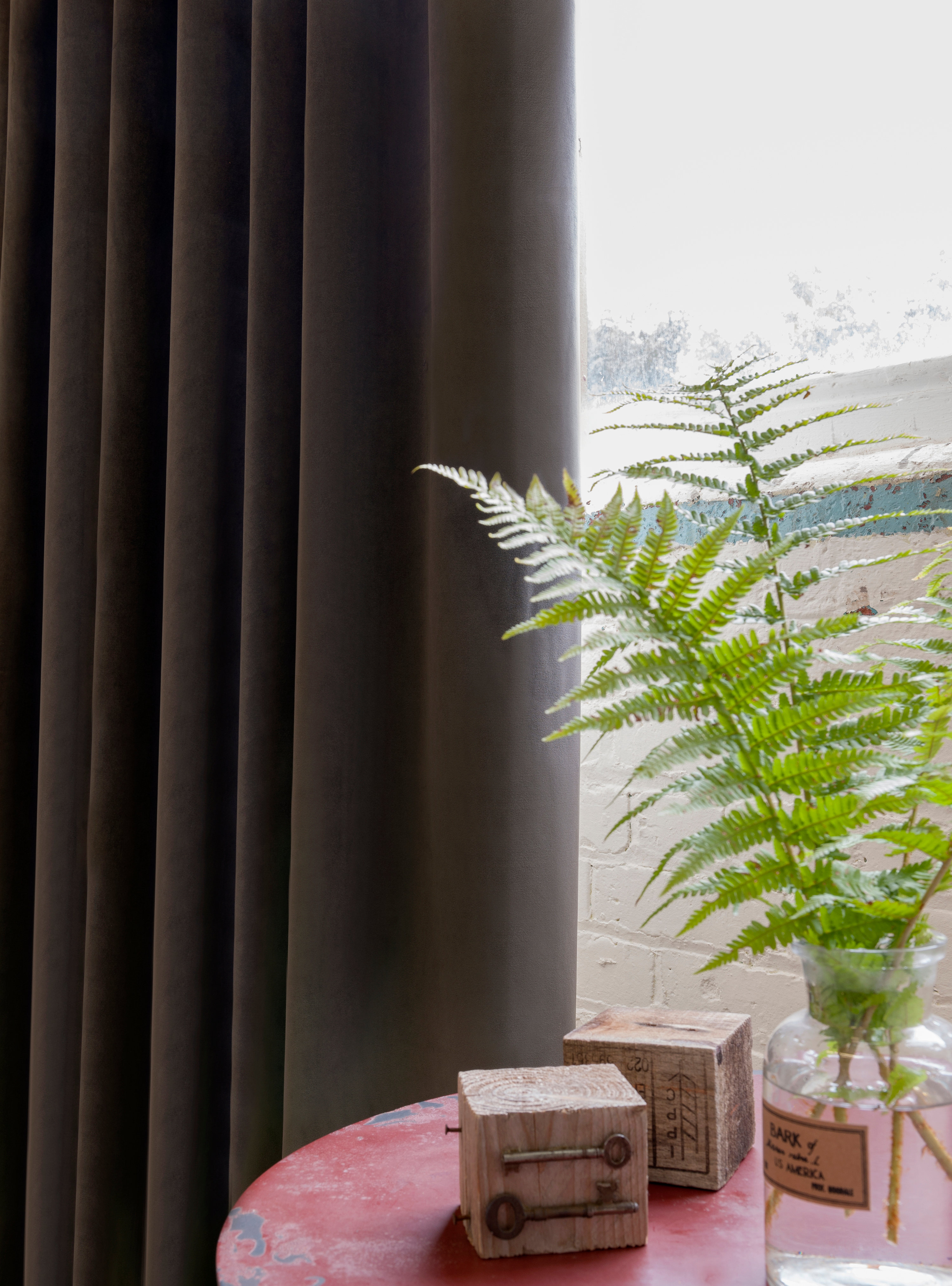 Som gardin henger det tungt med fin fall. Overflaten med klippet luv gir et fint spill i fargen.